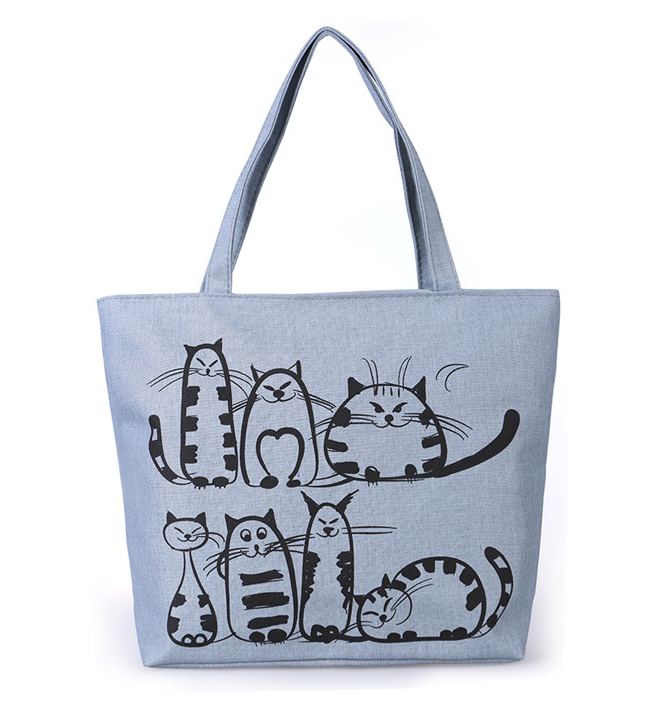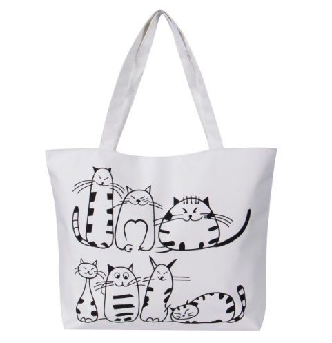 A handbag with a cat design serves as an interesting addition.