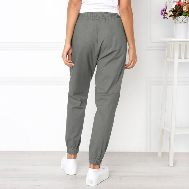 Women's harem trousers with an elastic waistband and drawstrings for tightening. Tapered legs. Comfortable loose fit. Available in multiple colour options.