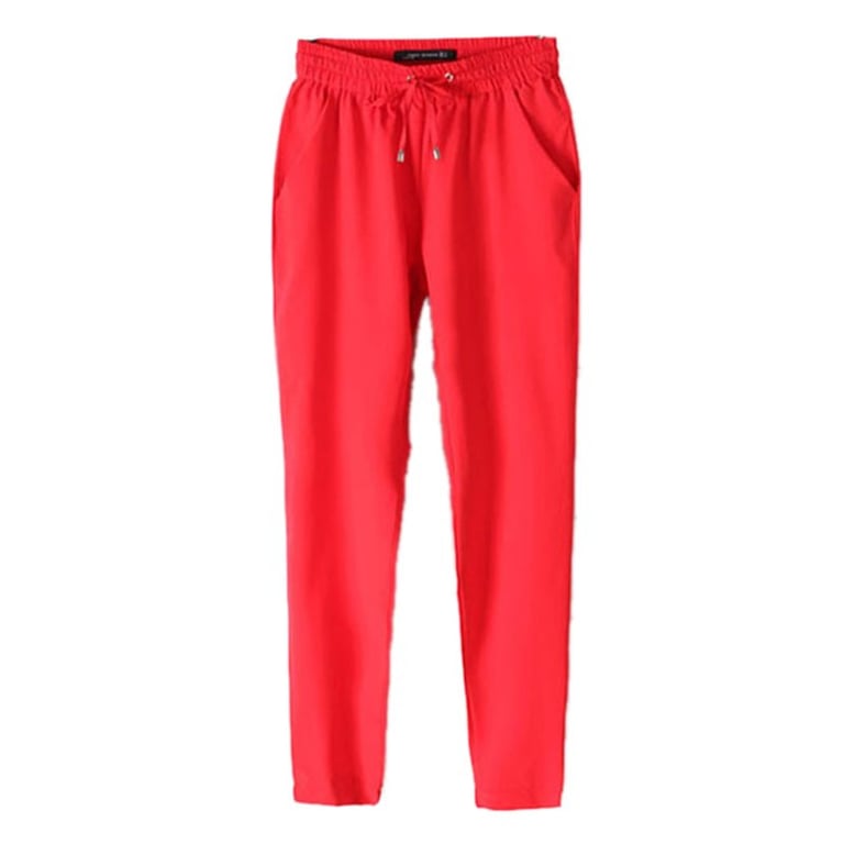 Women's loose-fitting harem trousers. The trousers feature an elastic waistband with drawstrings for adjustment. Available in multiple colour options.