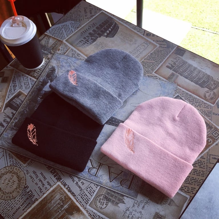 The women's modern hat with a feather will be an adornment to your everyday outfit in cold weather.