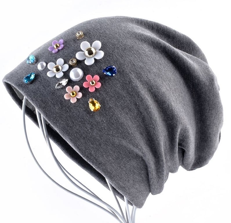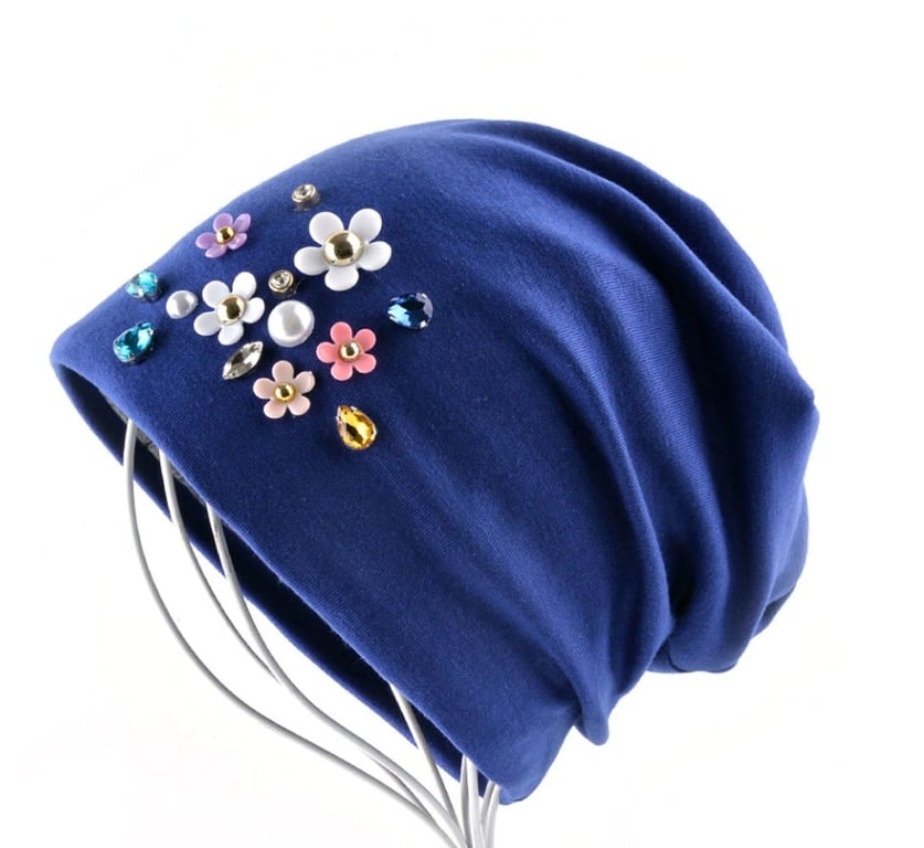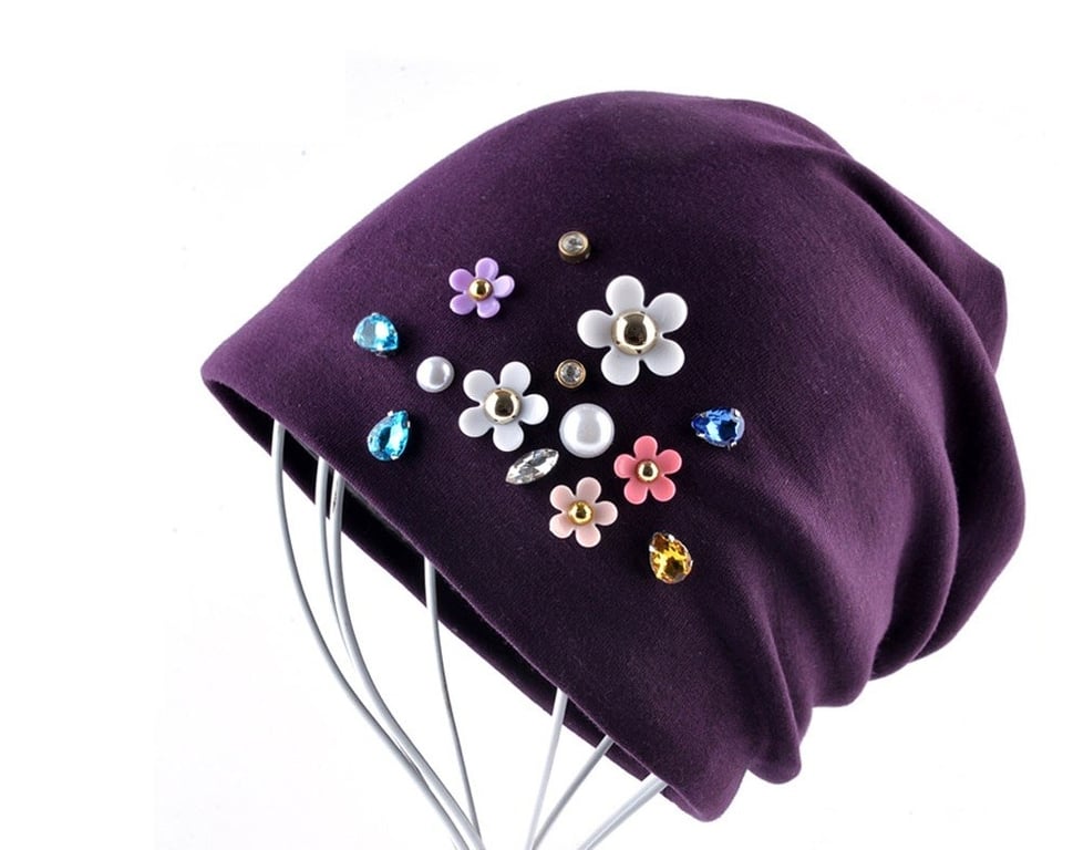 This ladies' fashion hat with rhinestones and flowers is suitable for everyday wear.