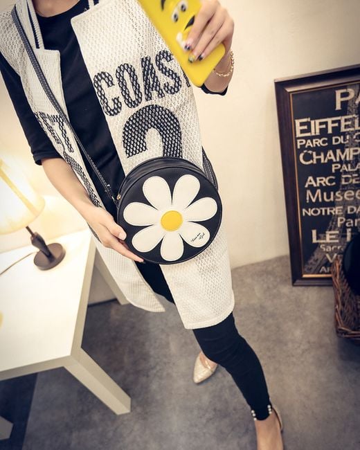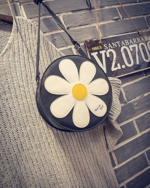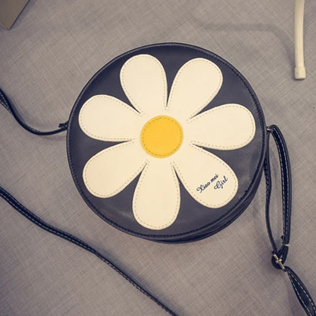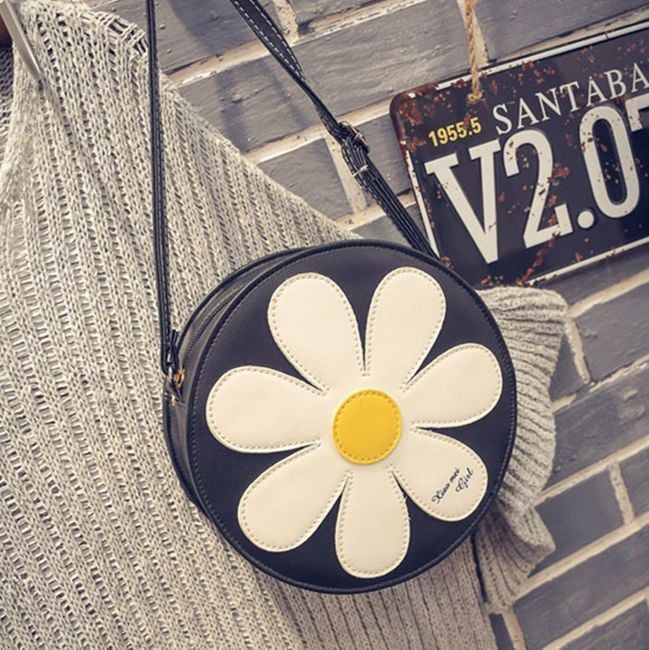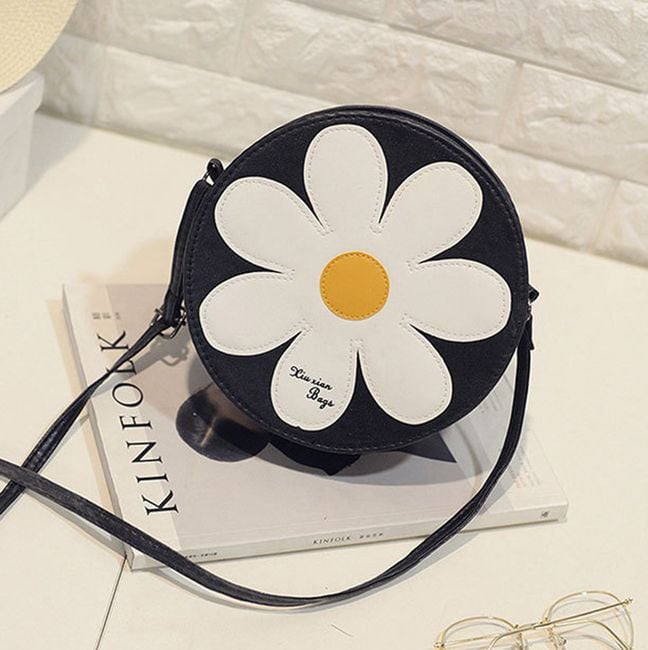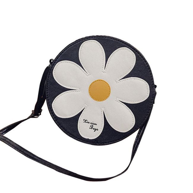Women's round hippie bag with a flower, a great accessory for various summer festivals.