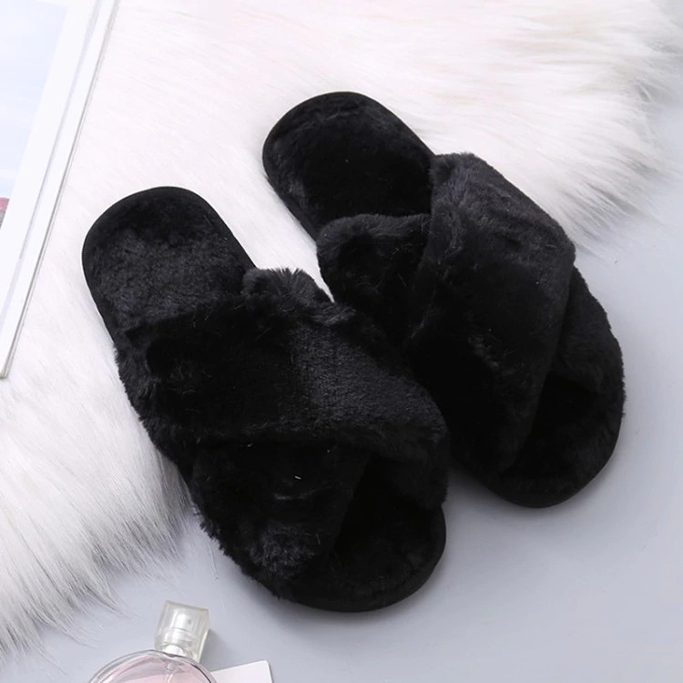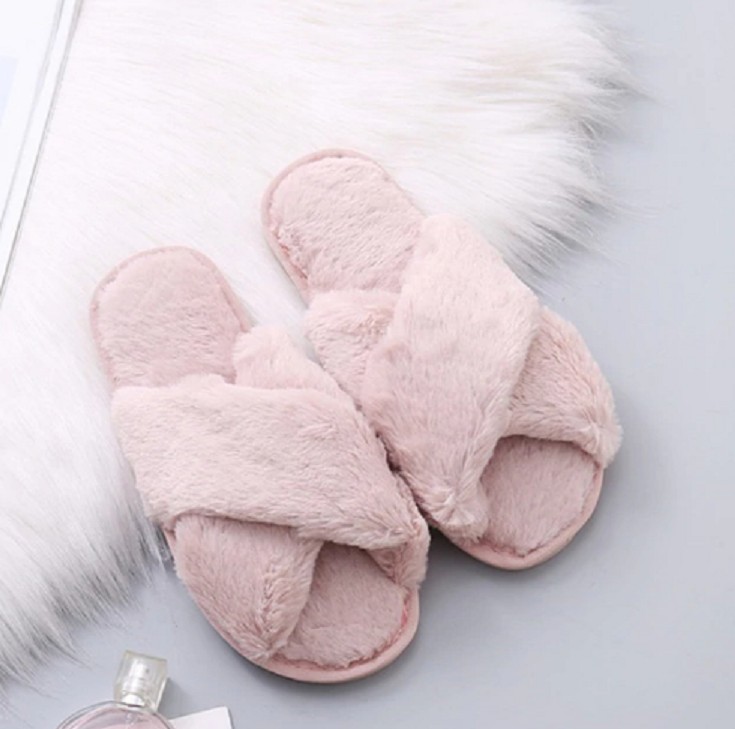 These fluffy slippers will keep your feet warm at home.