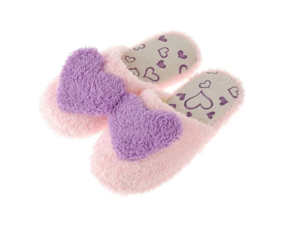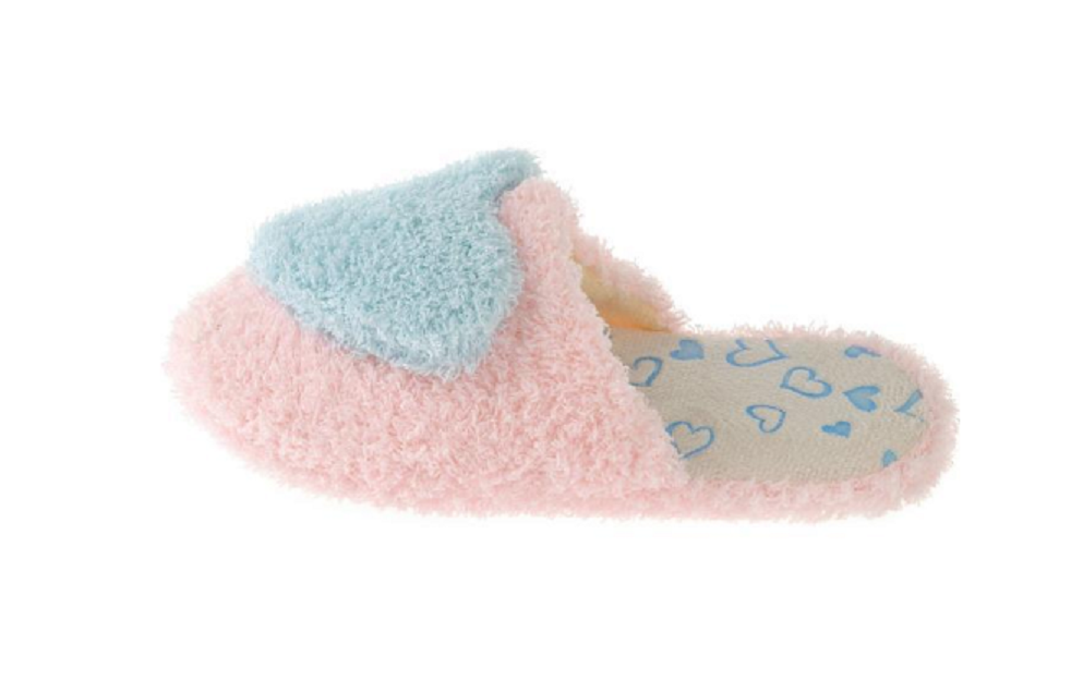 These soft slippers with a fluffy heart on the front will keep your feet warm.
