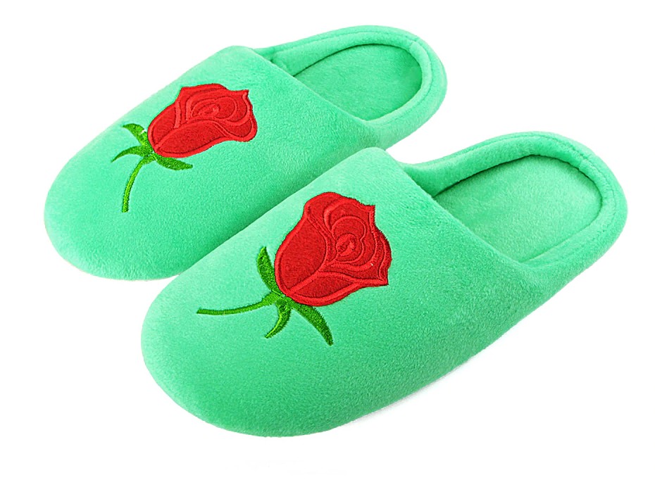 Every woman will love these beautiful slippers with an embroidered rose.
