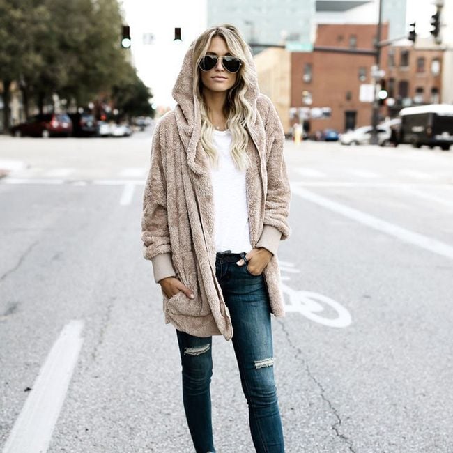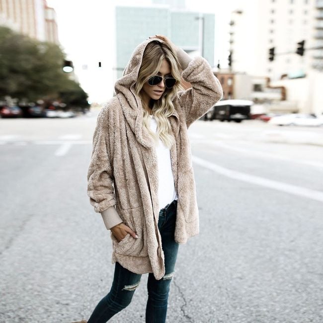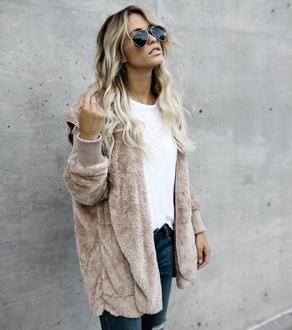 Women's hoodie made from soft plush material with a hood. A comfortable companion for cooler days.