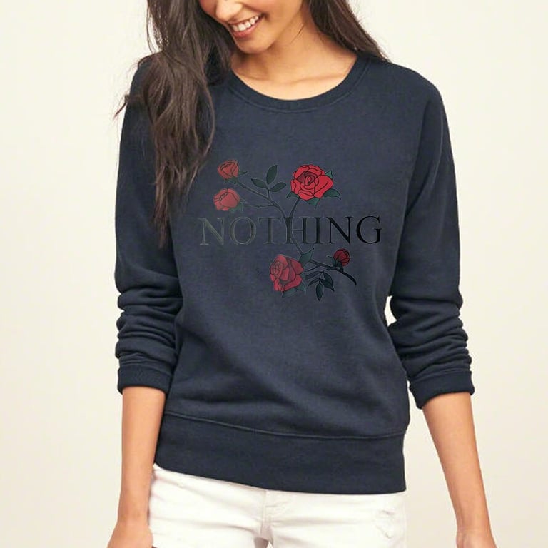 Women's sweatshirt with a colourful print on the front. The sweatshirt has a round neckline and an elastic waistband. Available in multiple colour options.