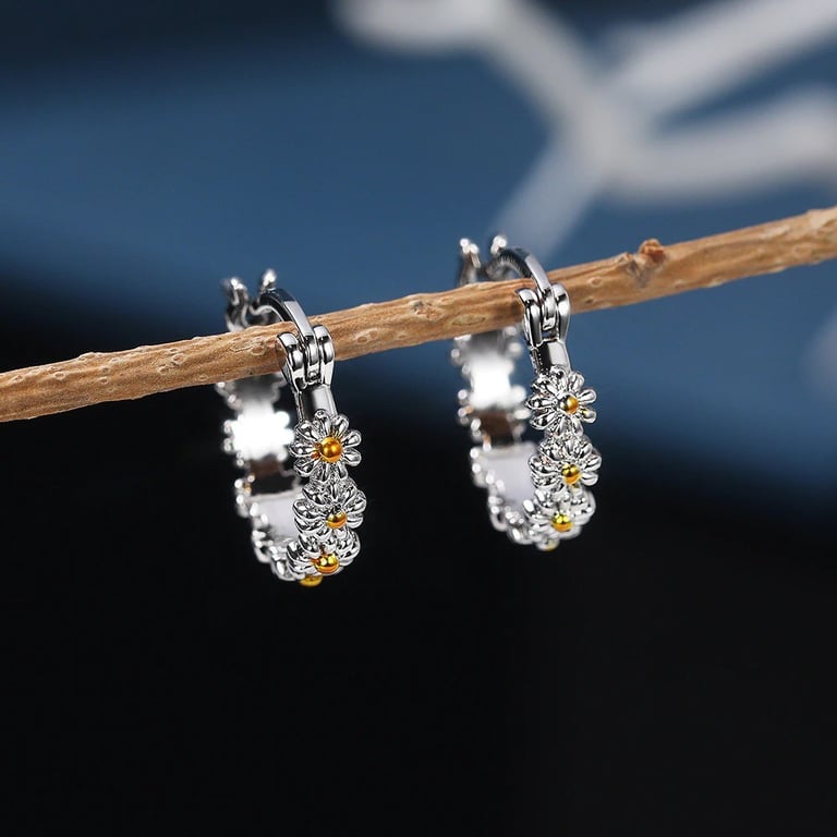 Women's hoop earrings with flowers