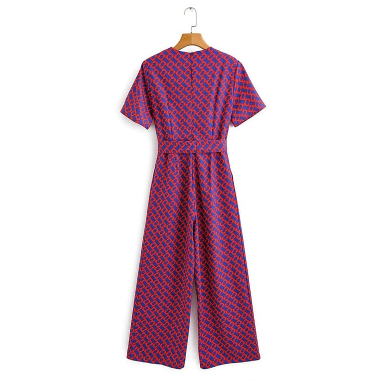 Ladies' jumpsuit with a pattern and tie.