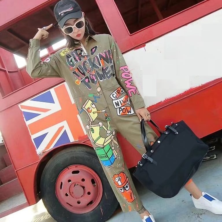 Women's jumpsuit with pictures and inscriptions