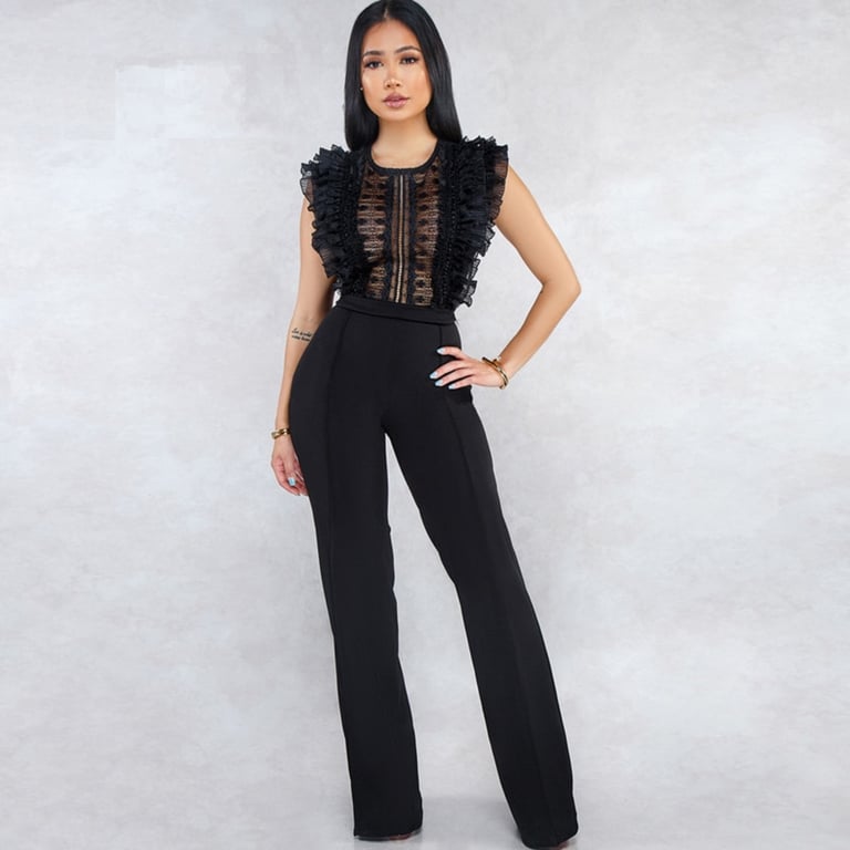 Women's Jumpsuit with Lace and Ruffles