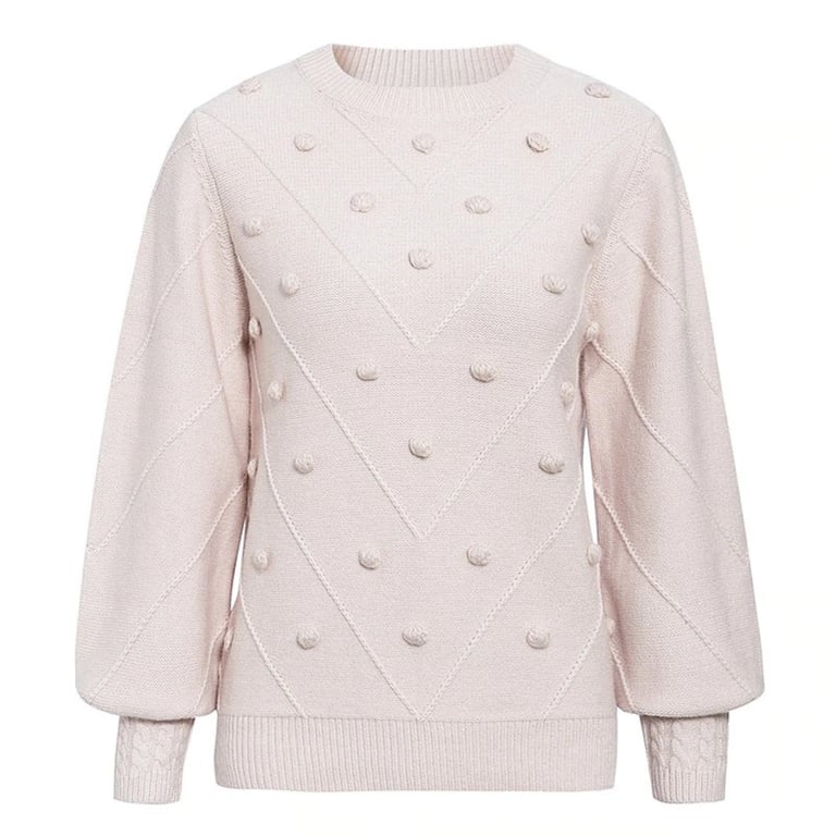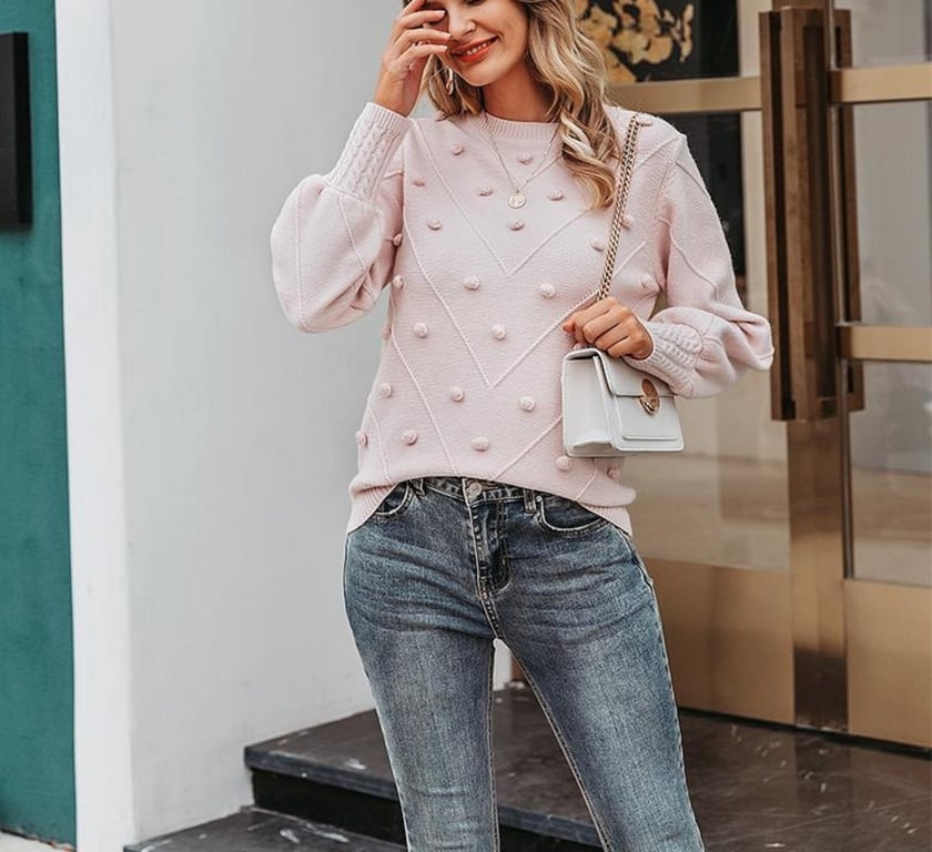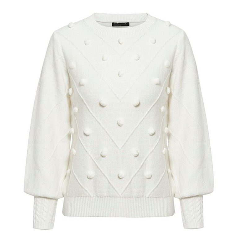 Women's Knitted Sweater with Pom Poms
