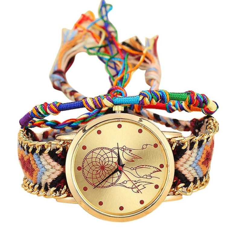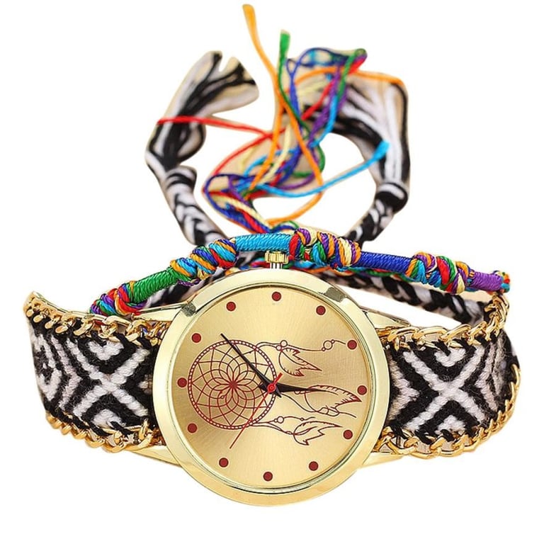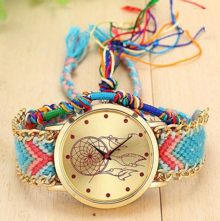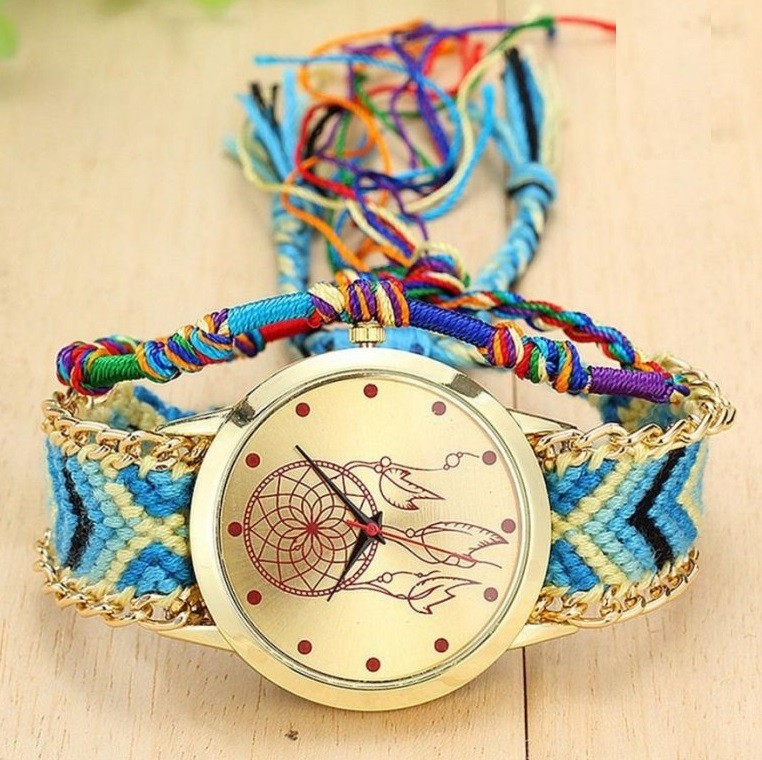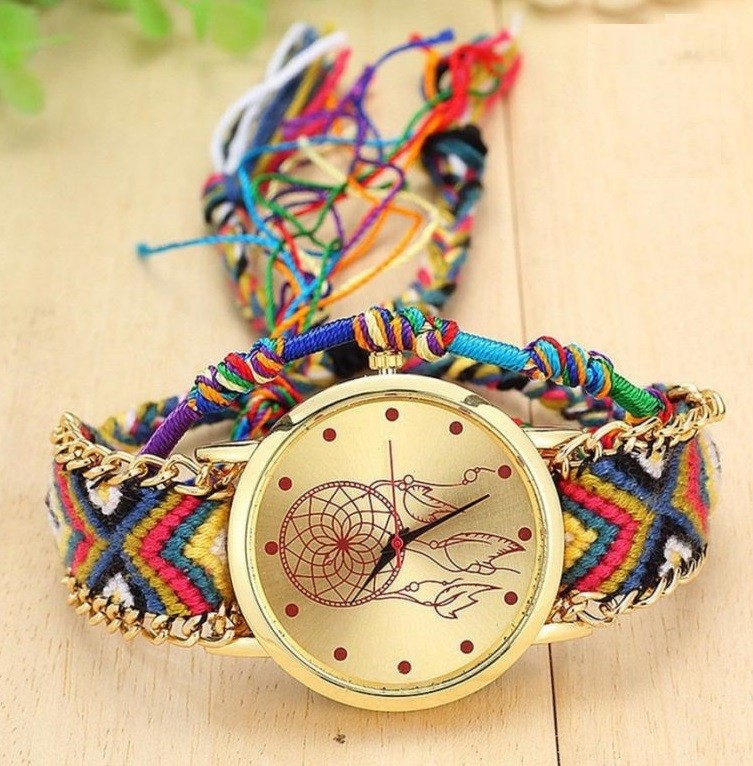 These watches are styled like a Chinese dreamcatcher, which is depicted on the dial with a colourful woven strap.
