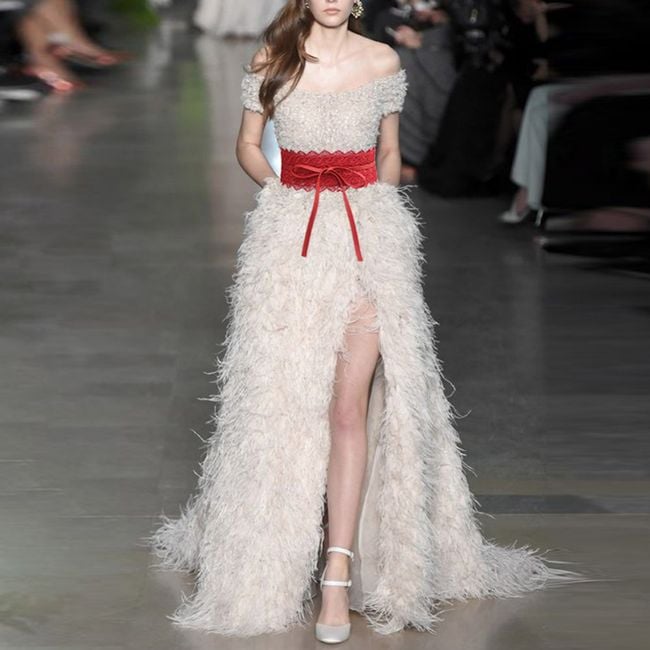 This stylish belt beautifully accentuates your waist. It is suitable for dresses as well as long t-shirts or blouses.