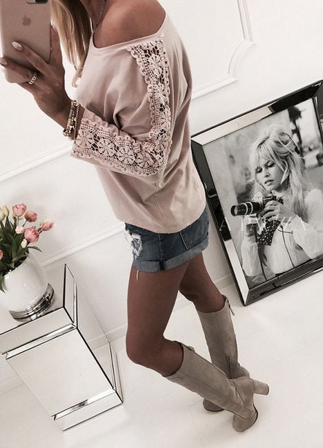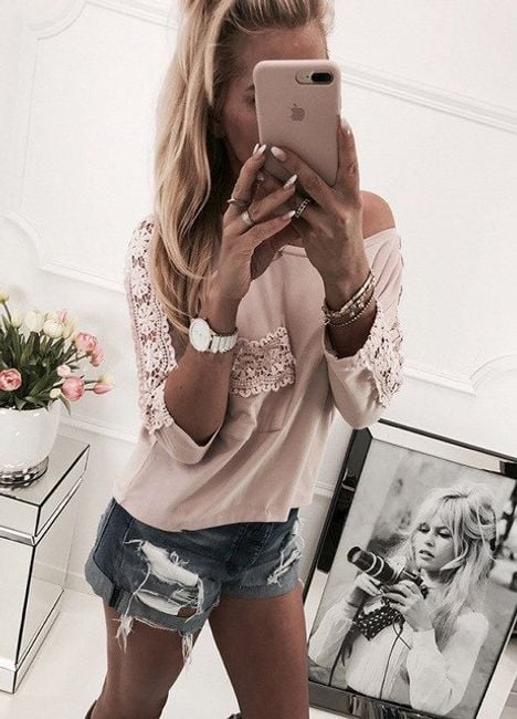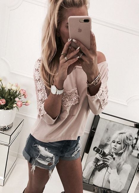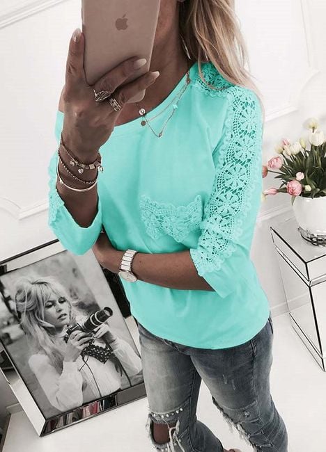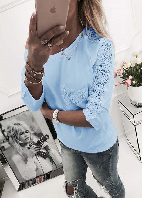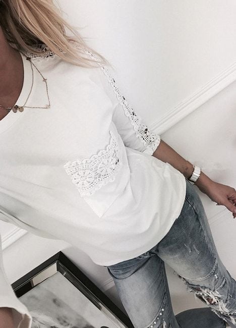 Women's stylish blouse with lace elements on the sleeves. Choose from 4 variants.