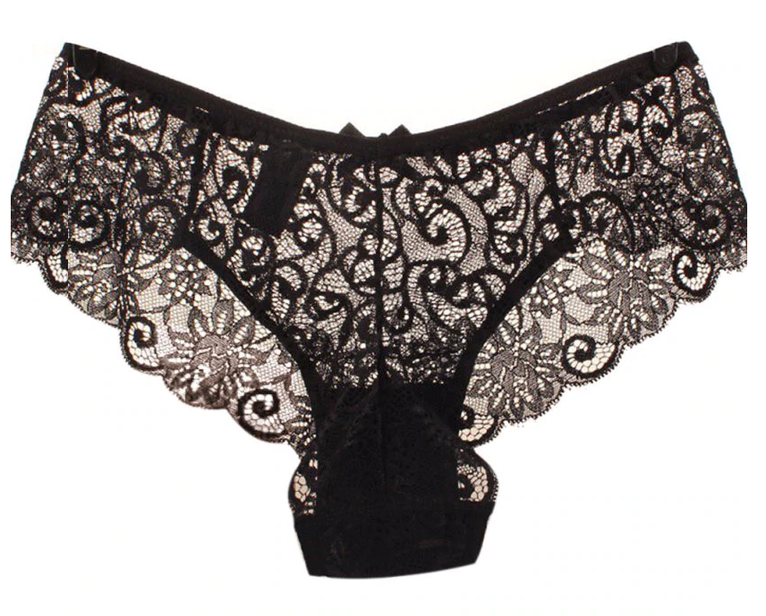 These lace Brazilian panties are sexy and have an elastic waistband.