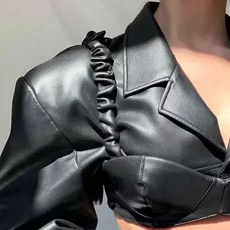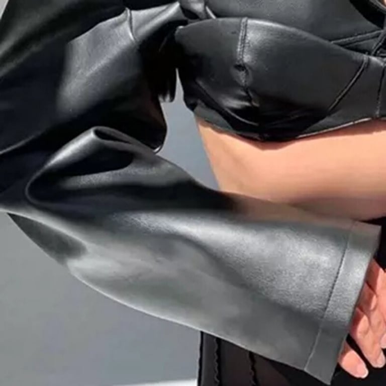 Short jacket for women made of faux leather.