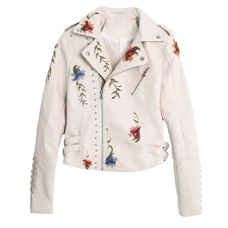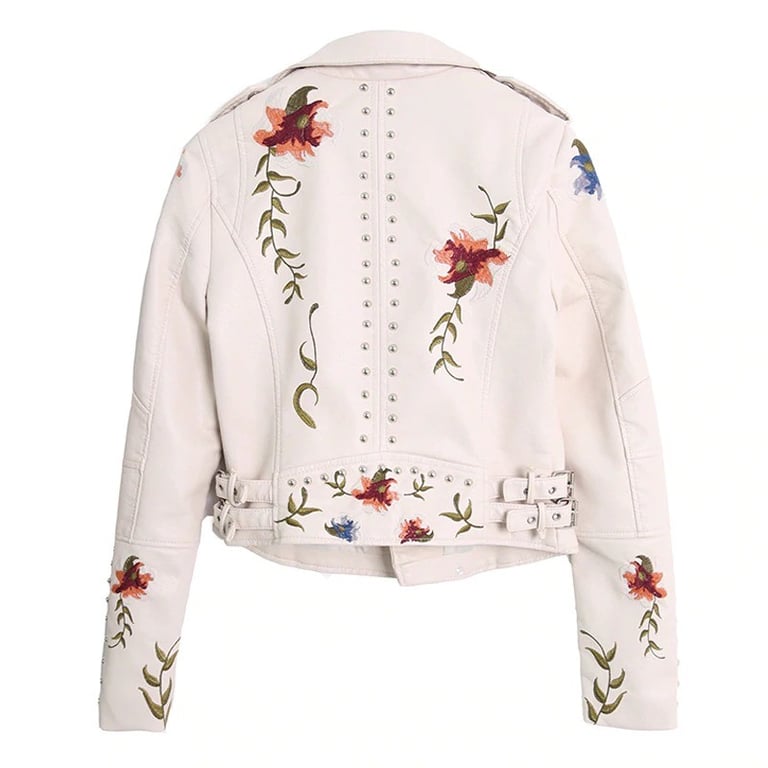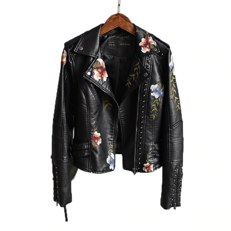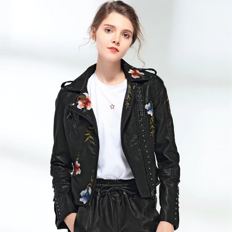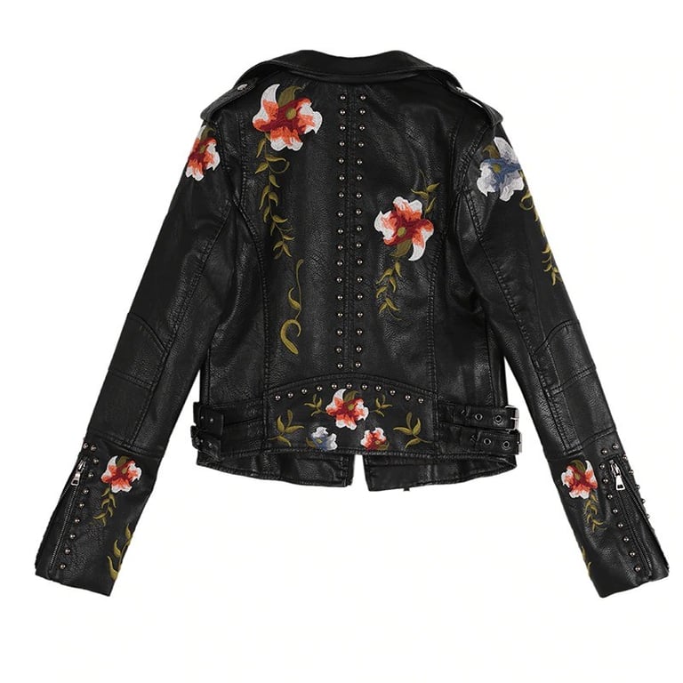 Women's Leather Jacket with Flowers