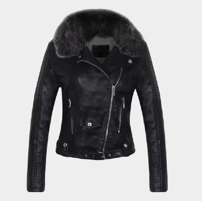 Women's Leather Jacket with Fur