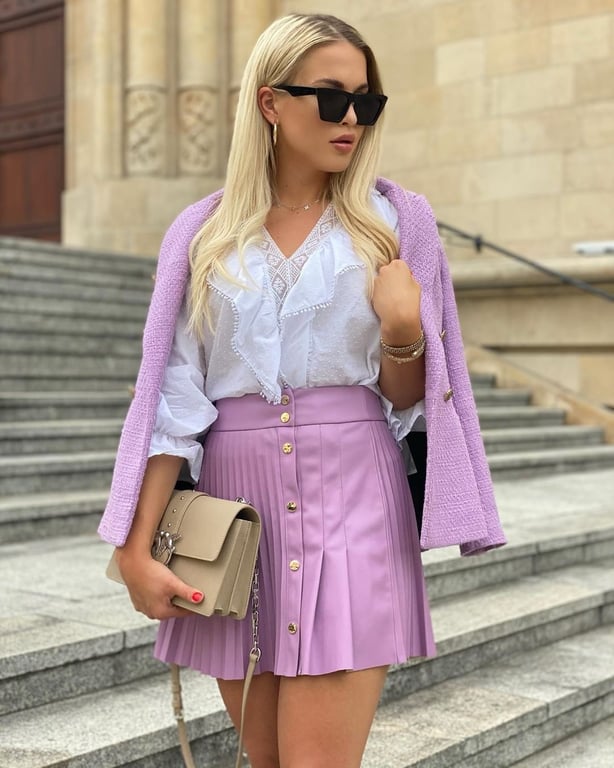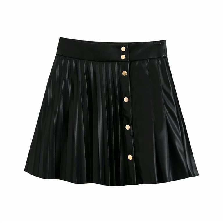 • Tags: Women's skirt, leather skirt, pleated skirt, elegant, skirt with buttons