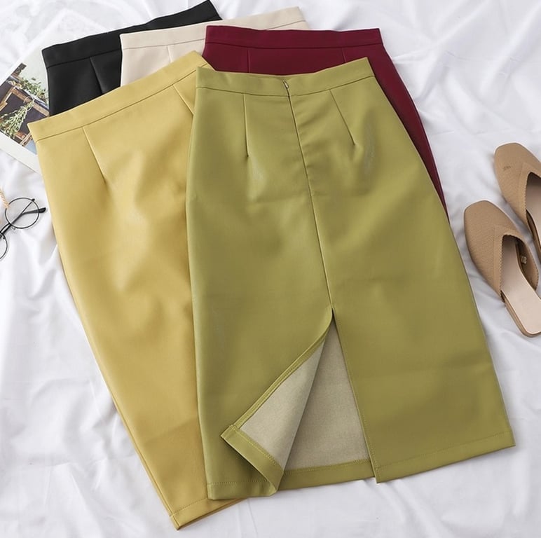 Women's Leather Skirt with Slit