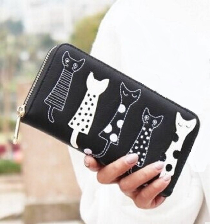 Women's Leather Wallet with Cats