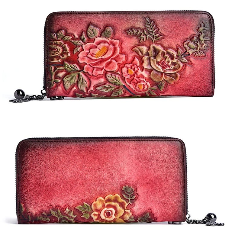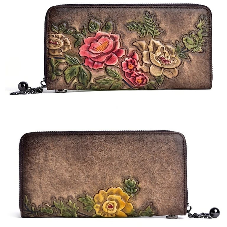 Women's Leather Wallet with Flowers