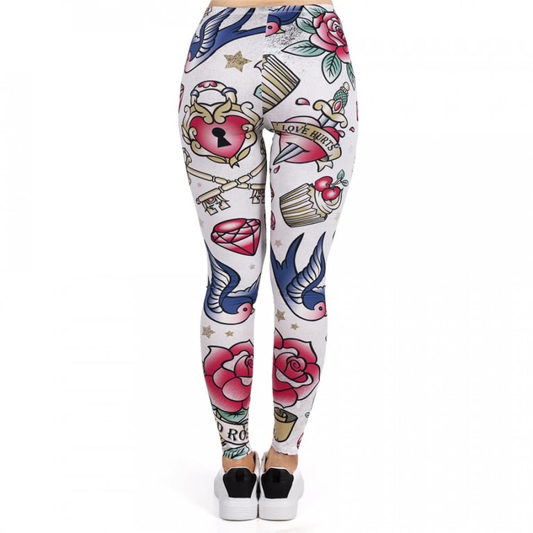 Women's leggings with a high waist. Fitted elastic material. Print with a colourful pattern.