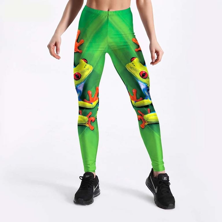 Stylish women's leggings with a frog motif that will truly brighten you up! Suitable for sports and everyday wear.
