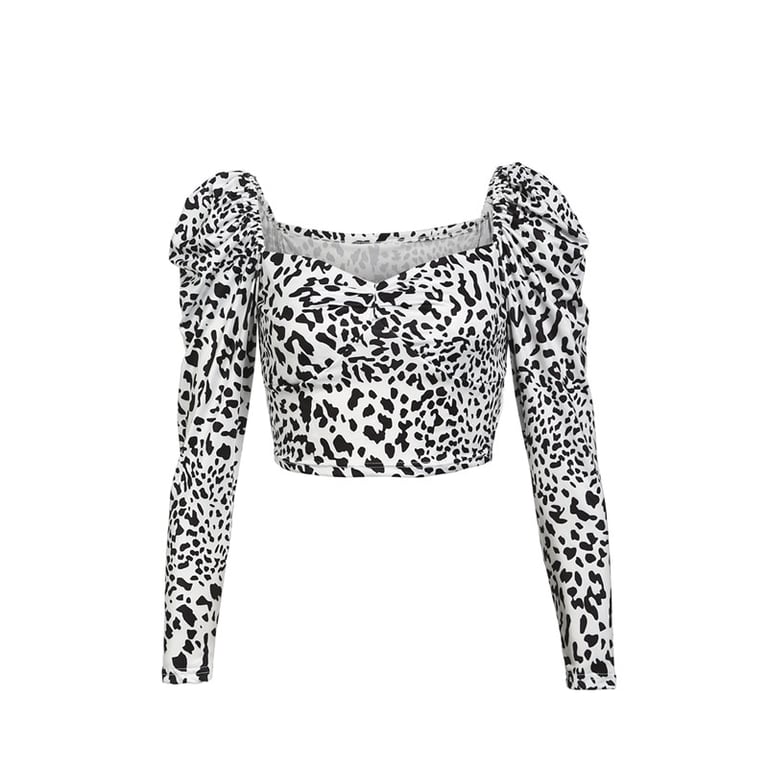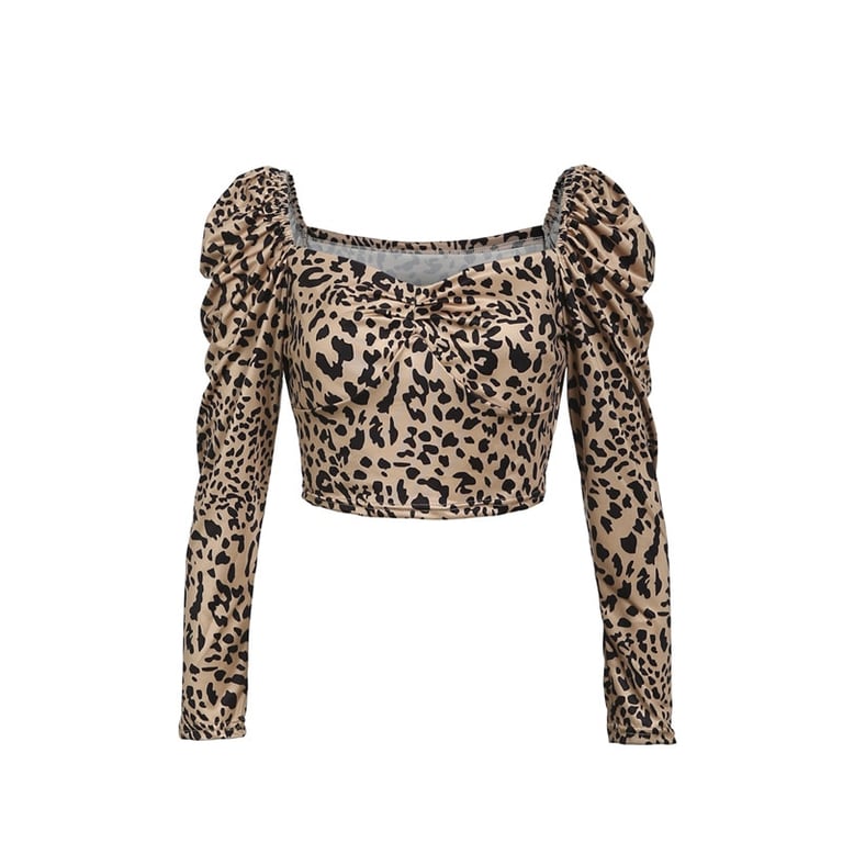 The leopard print blouse looks very sexy.