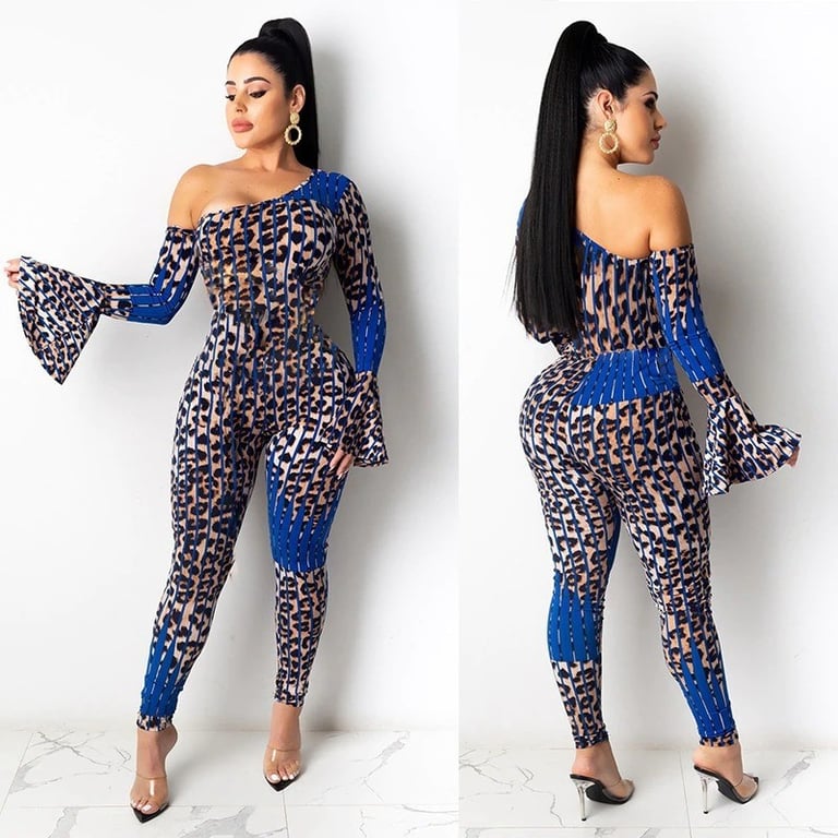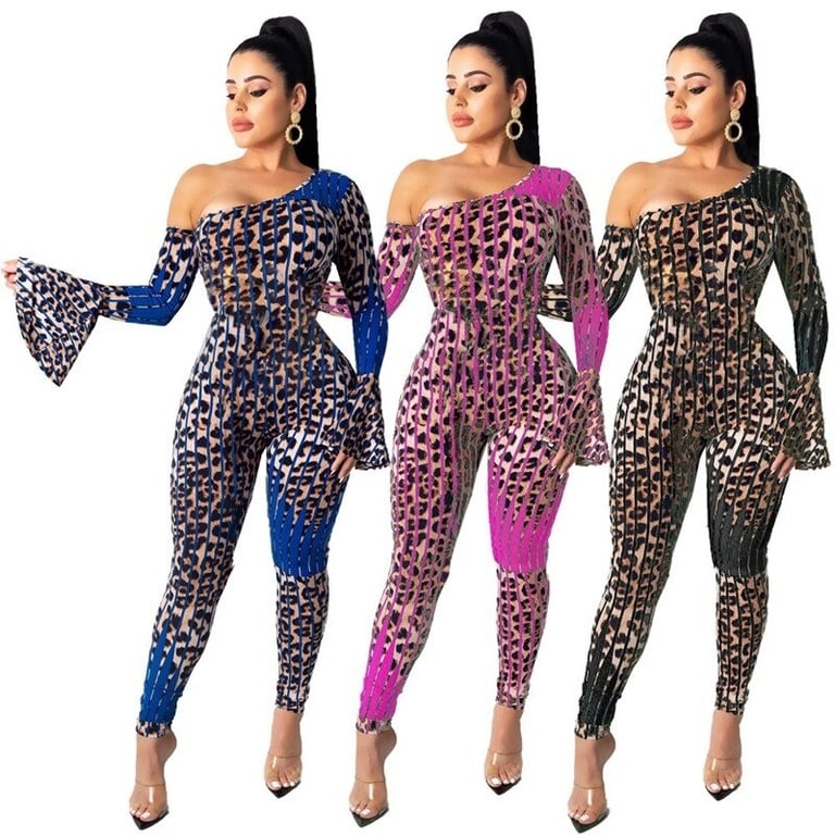 Ladies' leopard print long sleeve jumpsuit Belle™