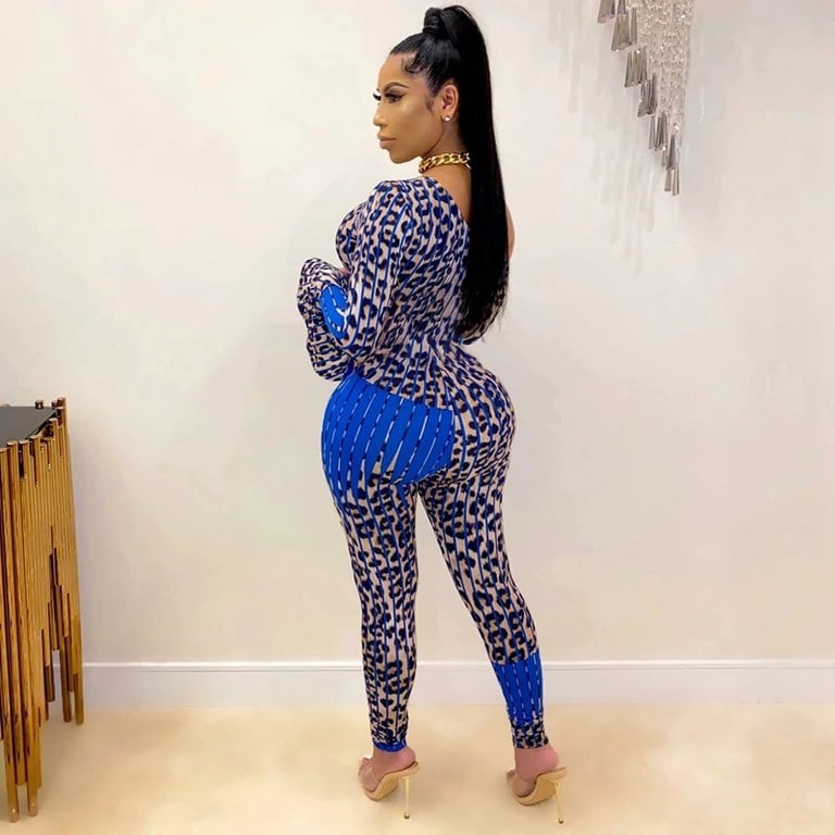 Women's Leopard Print Jumpsuit with Long Sleeves