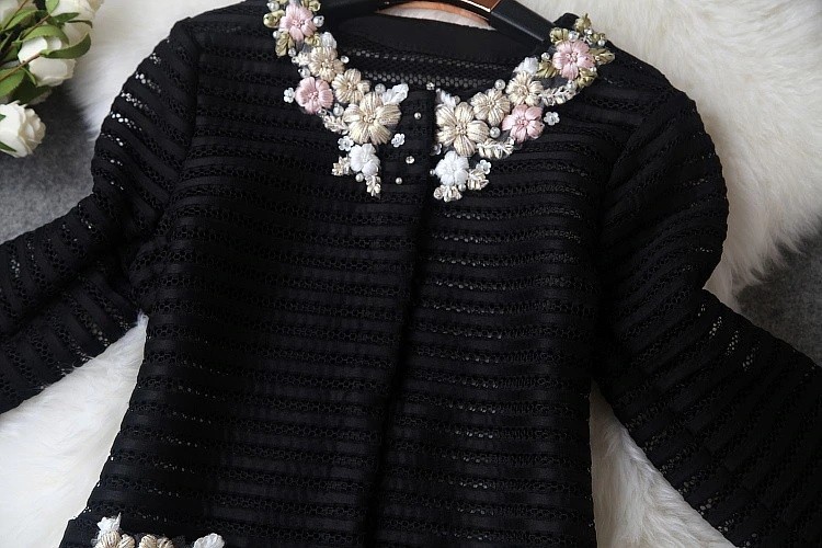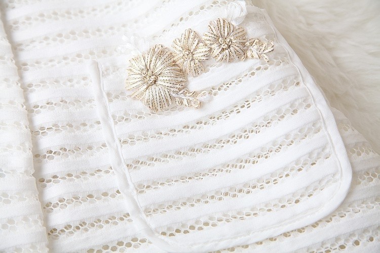 This women's lightweight jacket with embroidered flowers is perfect as an accessory over dresses.