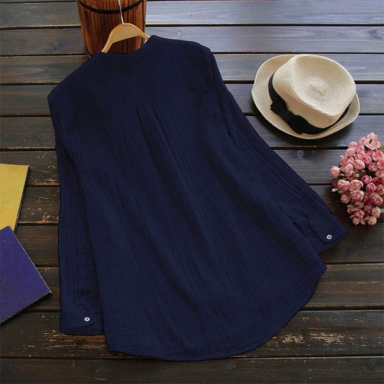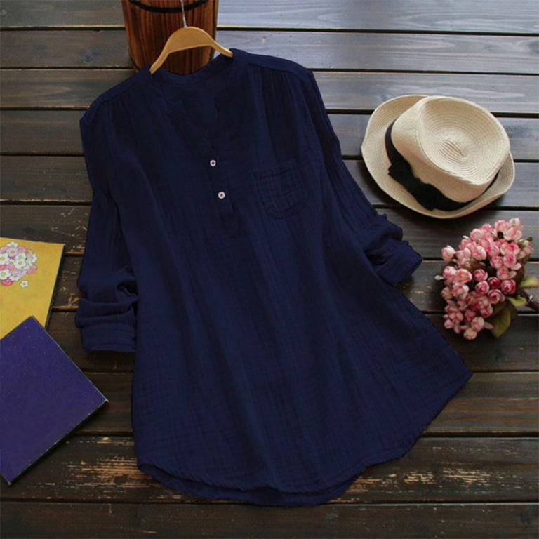 Women's blouse with long sleeves and a V-neckline with buttons. The shirt has a loose fit and a chest pocket. Made from lightweight, airy material. Available in multiple colour options.