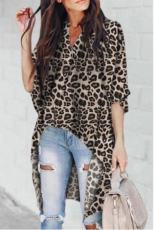 Women's long blouse with leopard print.