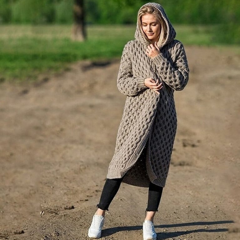 Long women's sweater in plus size with an attractive knitted pattern. Choose from pleasant colours the piece that best suits your outfit.