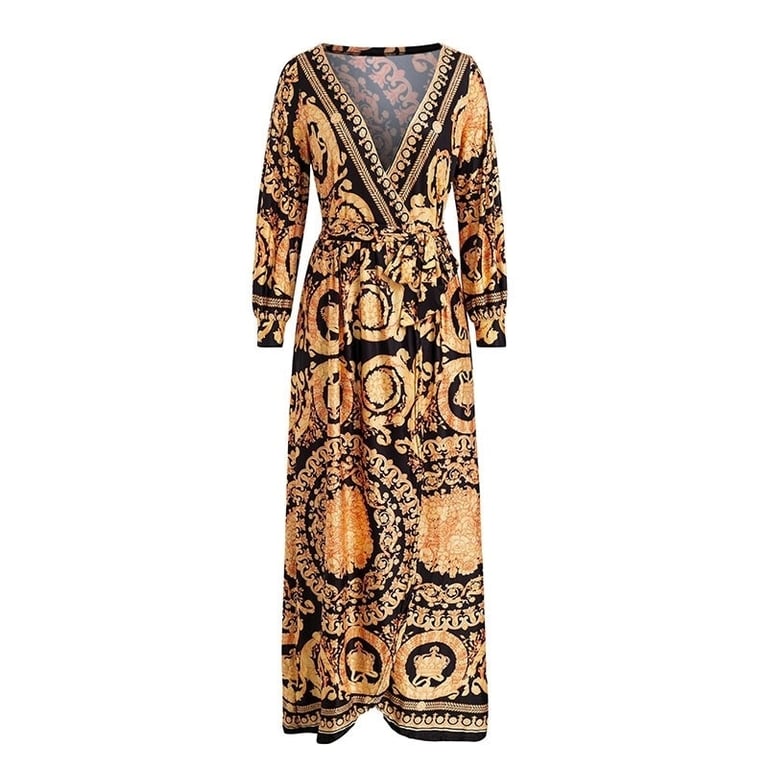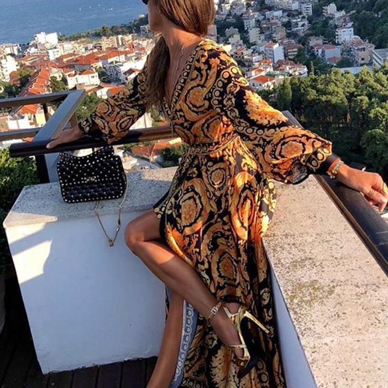 Provocative deep neckline and high slit thanks to the wrap effect.