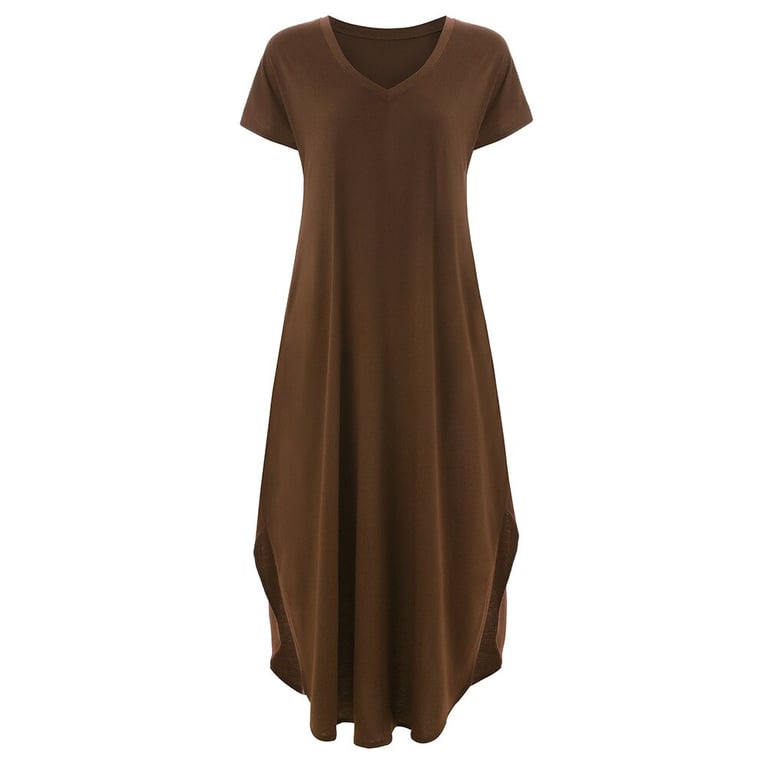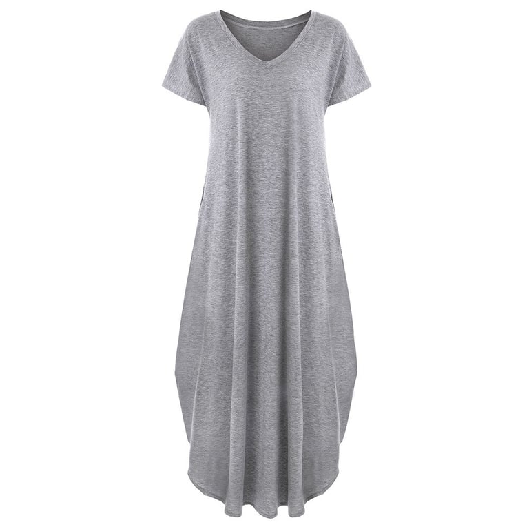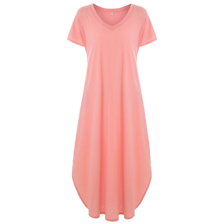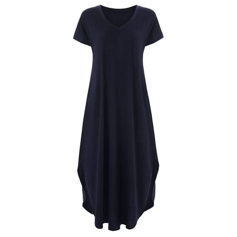 Women's dress with short sleeves and a round neckline.