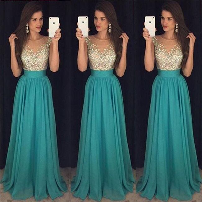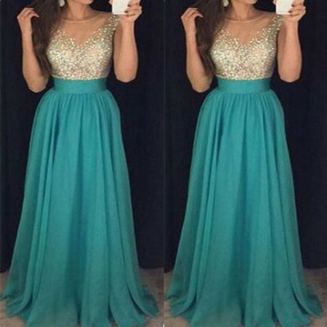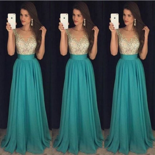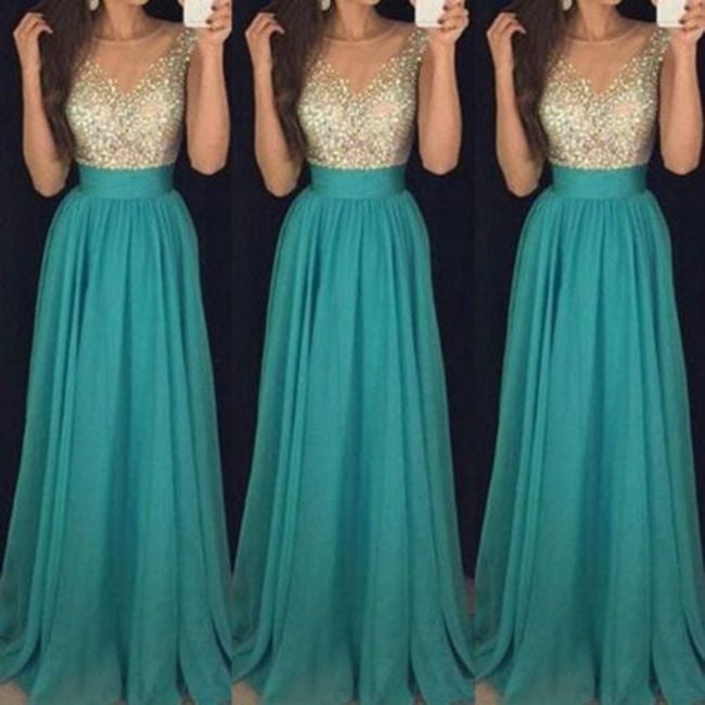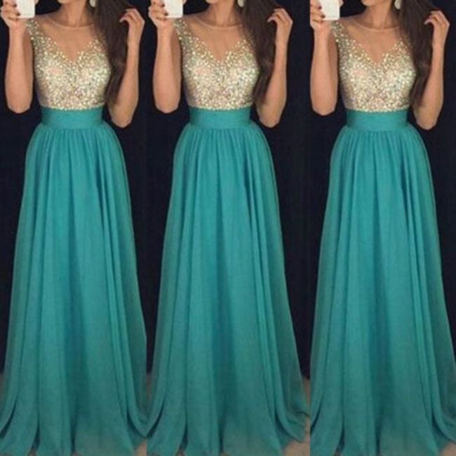 Ladies' long green dress Zina