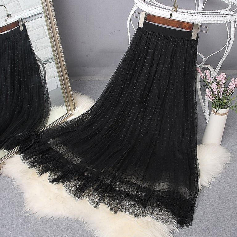 Women's Long Skirt with Lace and Dots