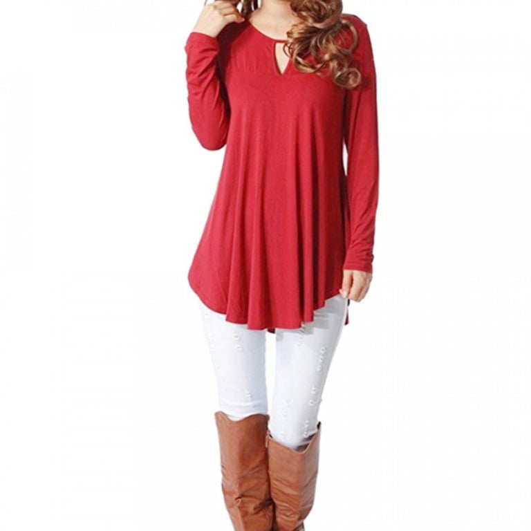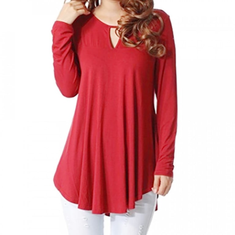 Women's long-sleeve top with an interesting detail at the neckline. The top has an asymmetrical loose fit. Available in multiple colour options.