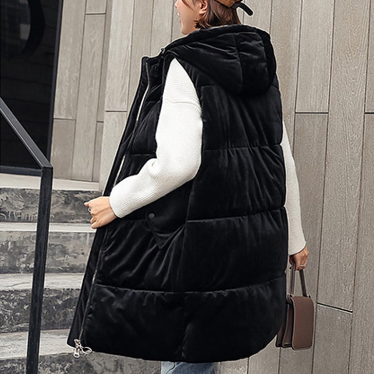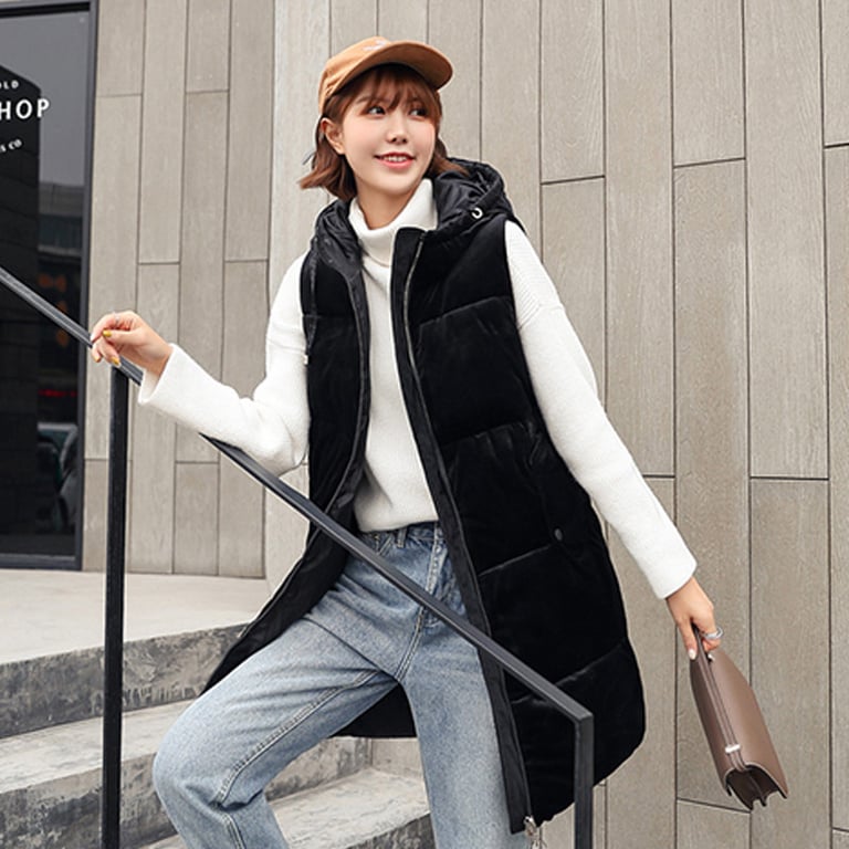 Comfortable vest with quilting and a hood for the autumn transitional period.