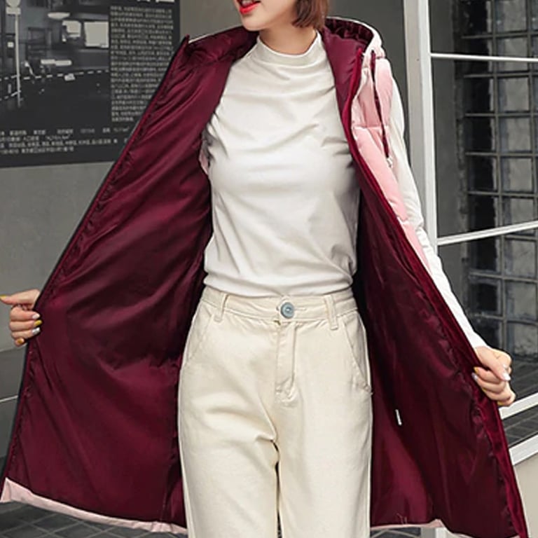 Comfortable vest with quilting and a hood for the autumn transitional period.