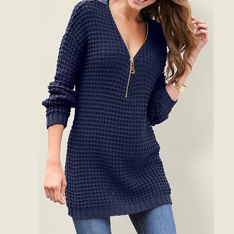 Women's longer sweater with sensual buttoning at the neckline. It will complete your everyday outfit.