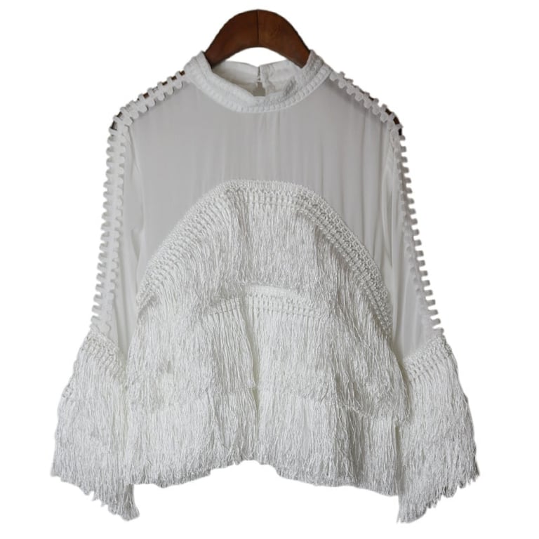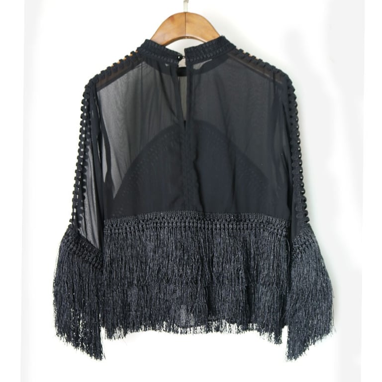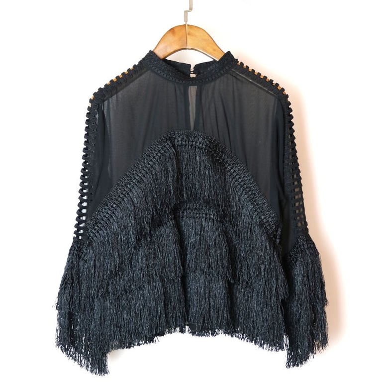 Stylish blousecovered with fringes at the bottom.