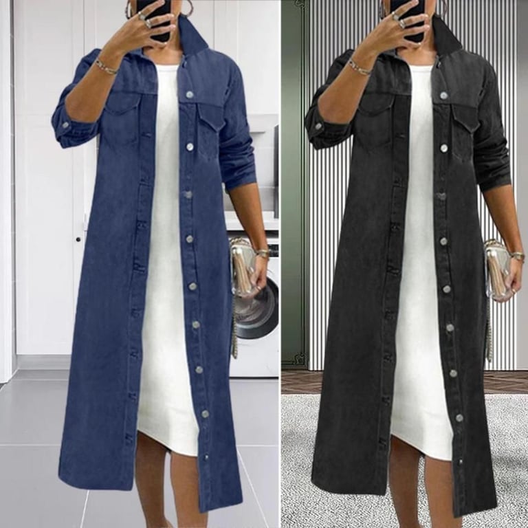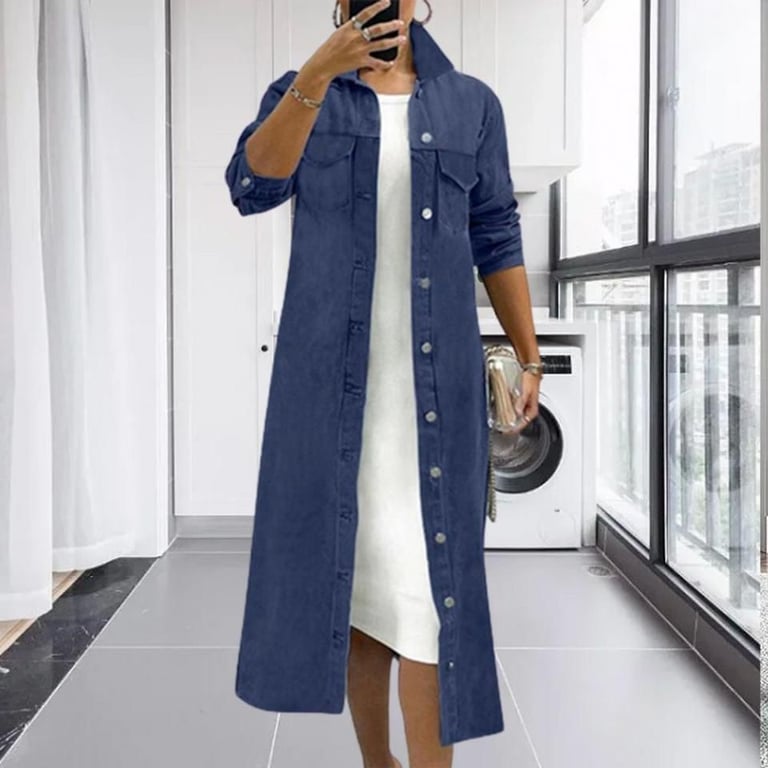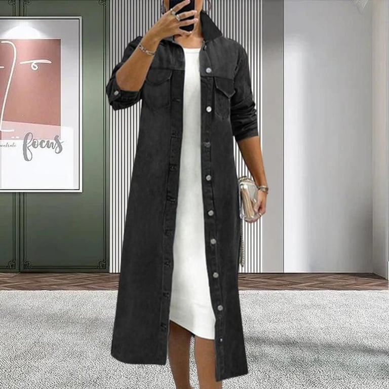 Long coat in a modern style, suitable for trousers, as well as dresses and skirts.