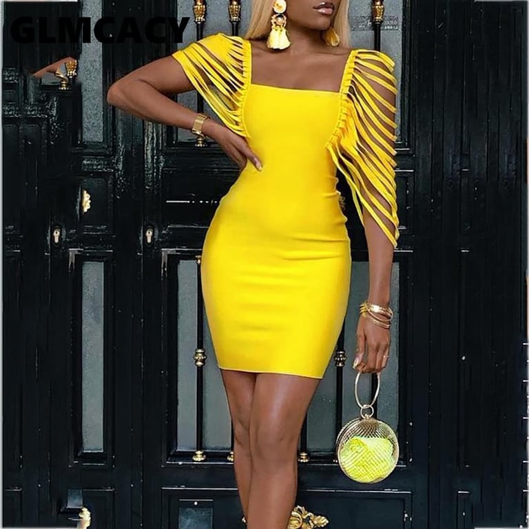 Women's luxury knee-length fitted dress with uniquely designed sleeves.