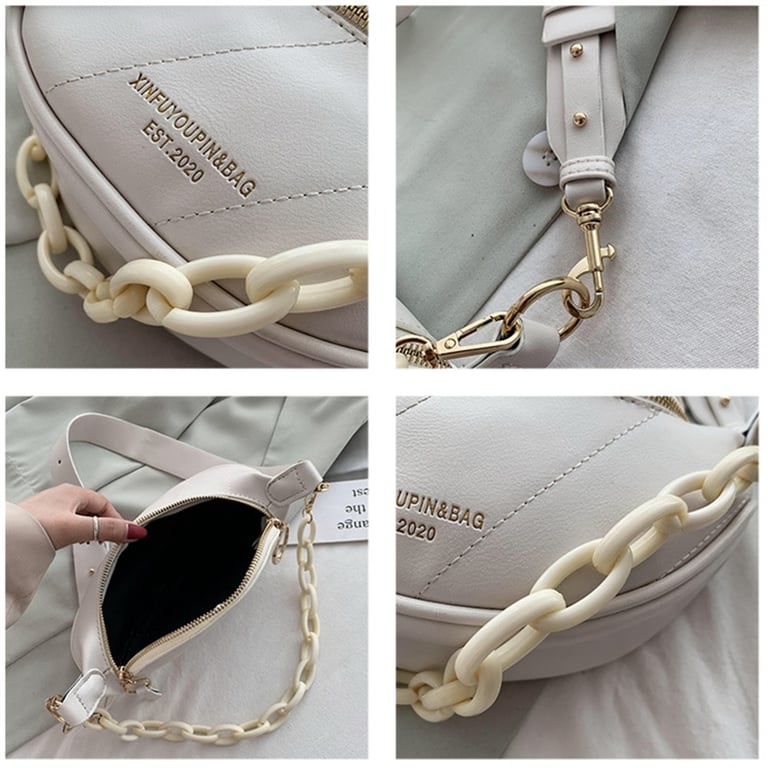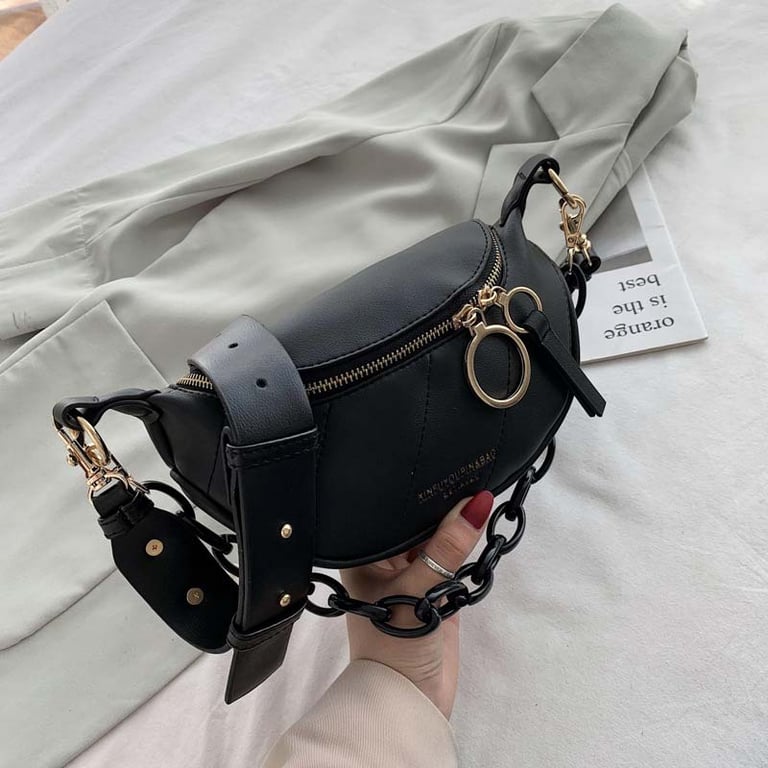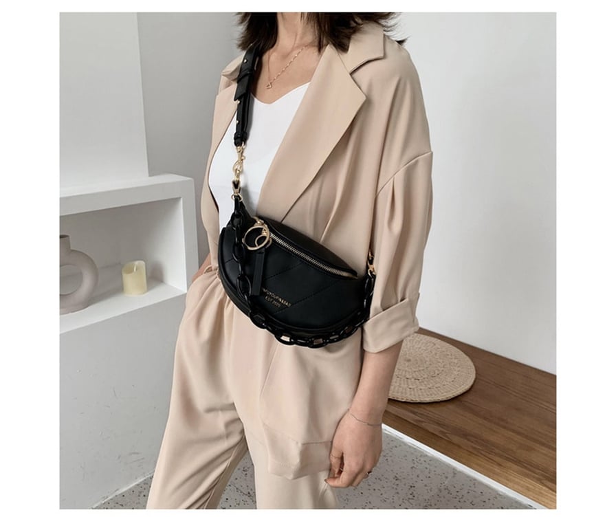 • This women's luxury faux leather shoulder bag / fanny pack, adorned with a wide chain, perfectly complements your everyday outfit.