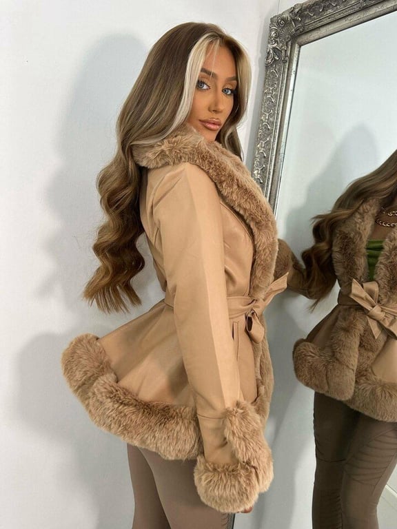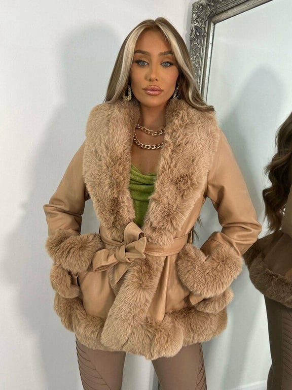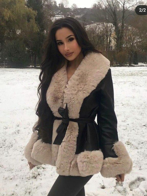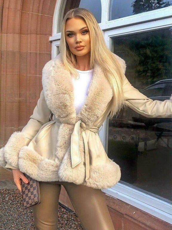 This stylish women's leather coat with a fur collar will add a real flair to your outfit. It is also suitable for cooler weather.