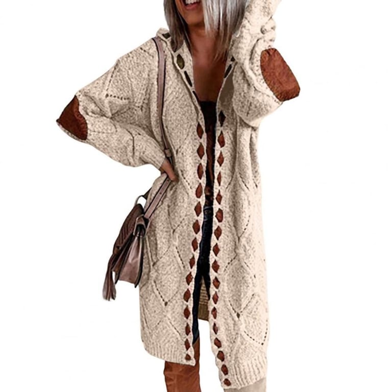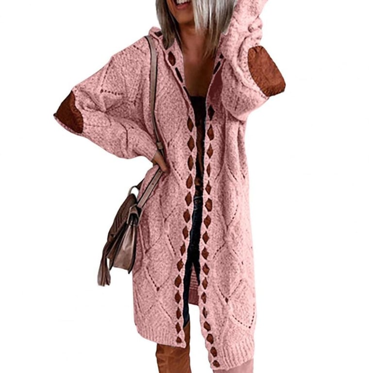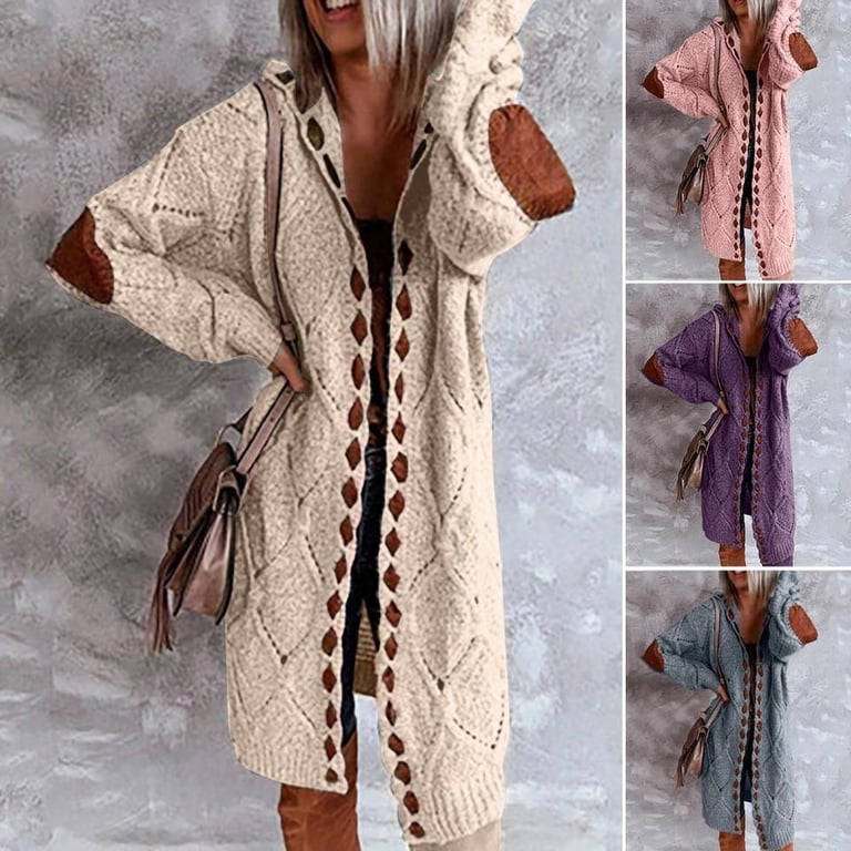 Luxury women's knitted coat with long sleeves. The coat is insulated and suitable for cold weather.
